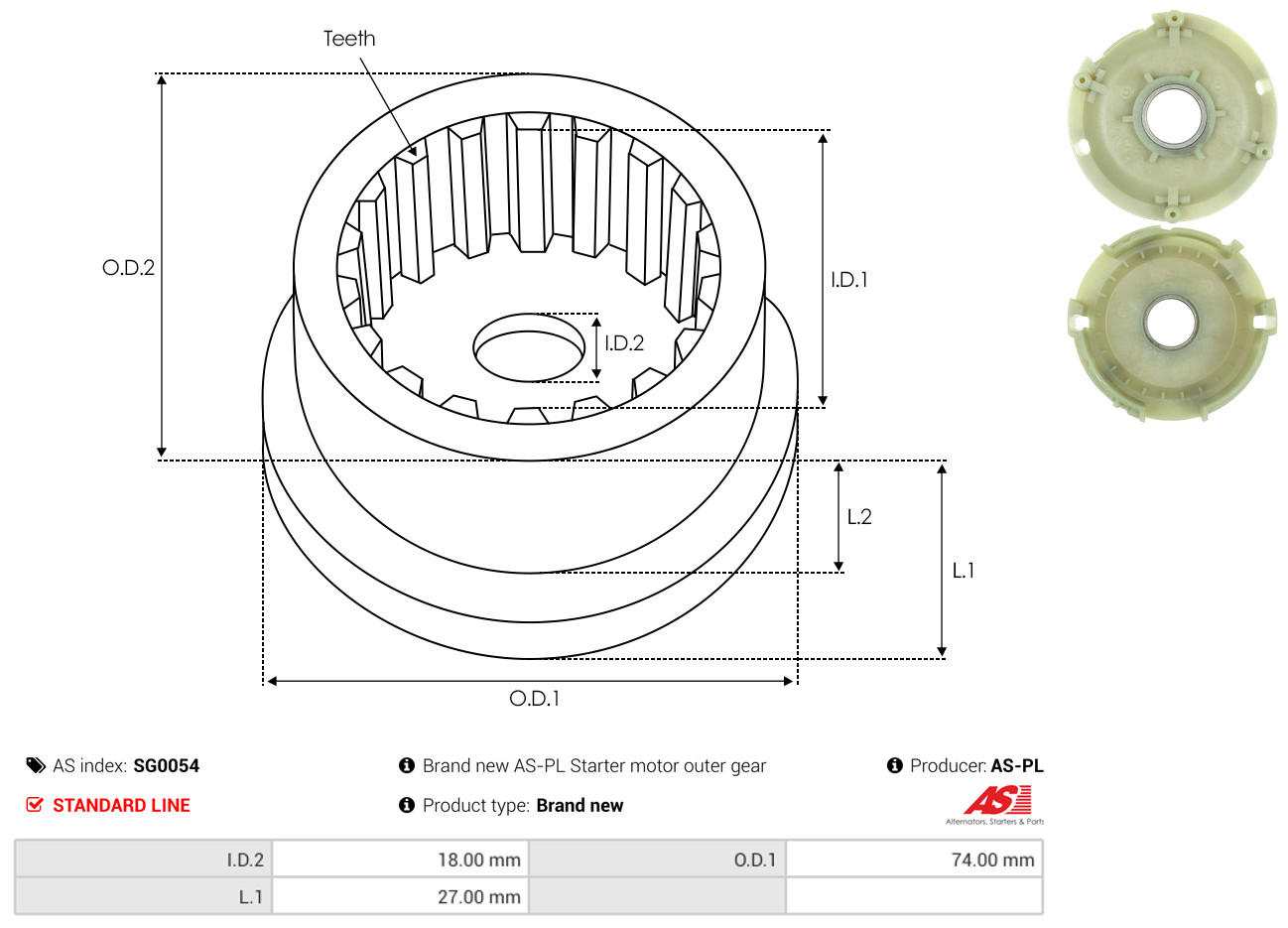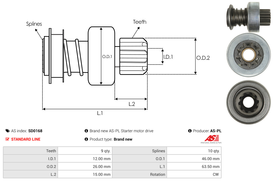 AS-PL Freilaufgetriebe, Starter SD0168 Universal für VW FIAT MERCEDES-BENZ VOLVO 9936671 A0001519013 1367374