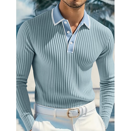 Per uomo Top a Maglia a Coste Testurizzato Affari Casuale Colletto Polo a Coste Manica Lunga Moda Essenziale Tinta unica Lavoro a maglia Autunno Inverno Tutte le stagioni Vestibilità aderente Blu