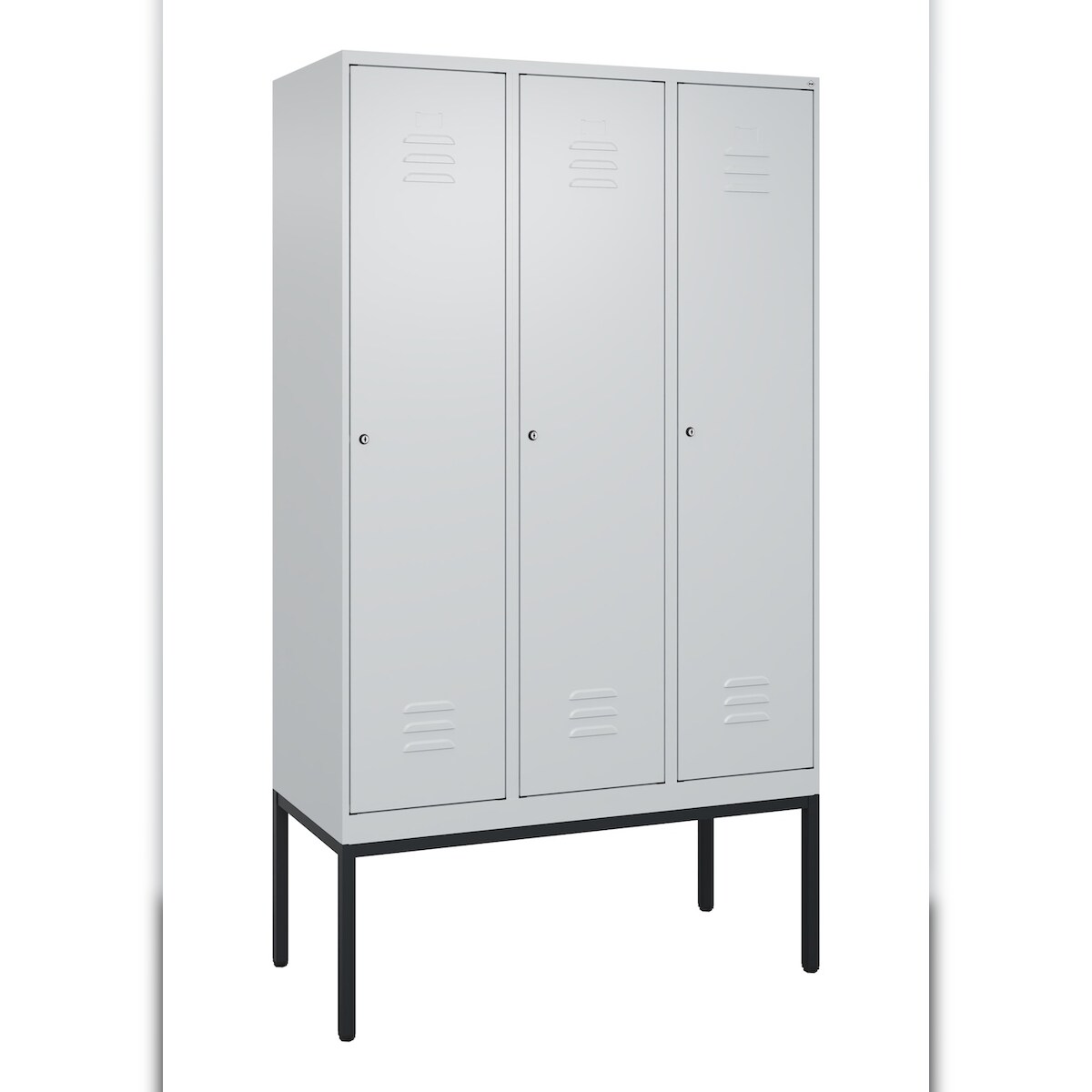 Doppelstock-Spind Classic PLUS, 3 Abteile, lichtgrau, HxB 1850 x 900 mm, mit Bodengleitern, Zylinderschloss C+P