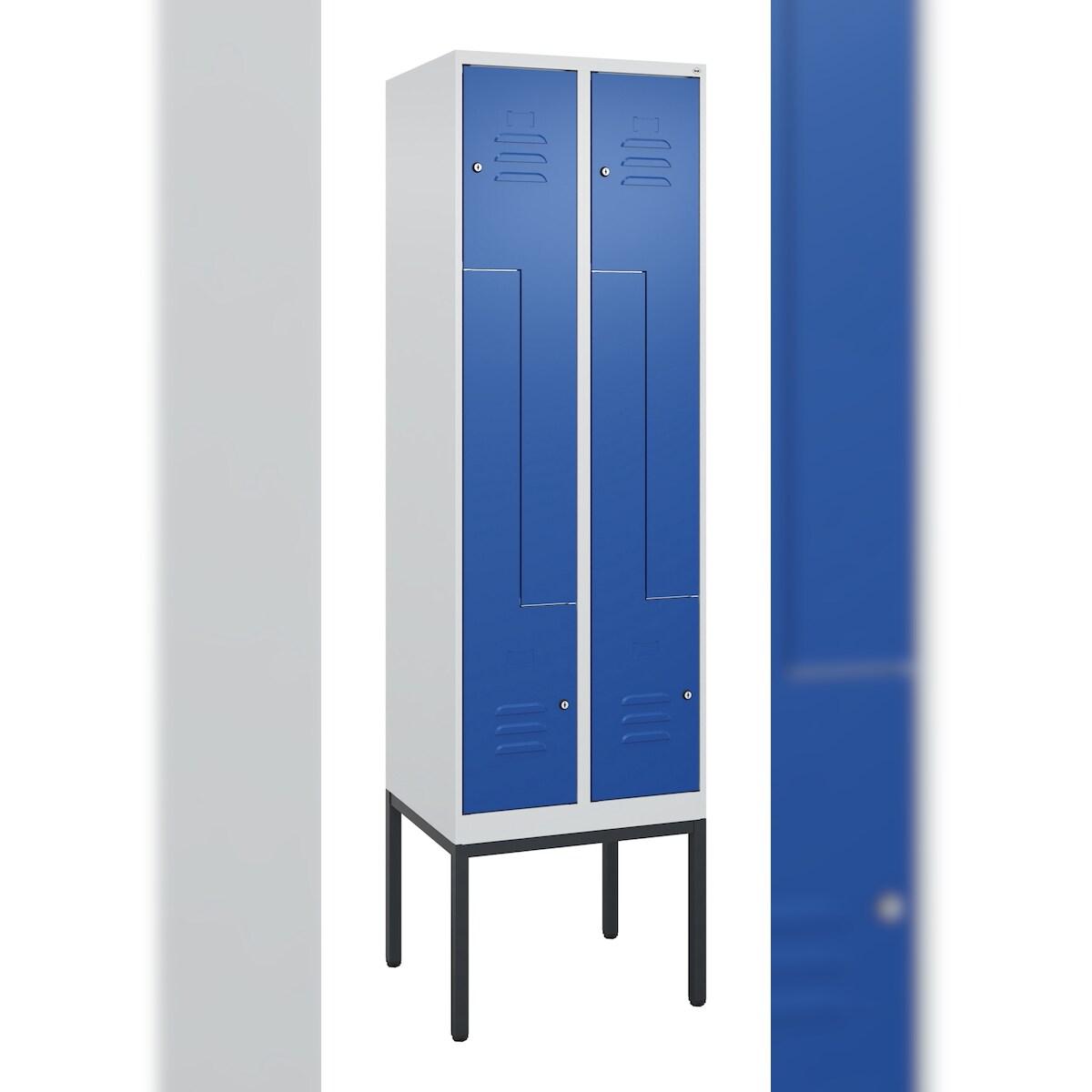 C+P Z-Spind Classic PLUS, Gestell, 4 Abteile, HxBxT 212x60x50cm, Zylinderschloss, Hellgrau/Enzianblau von PROREGAL