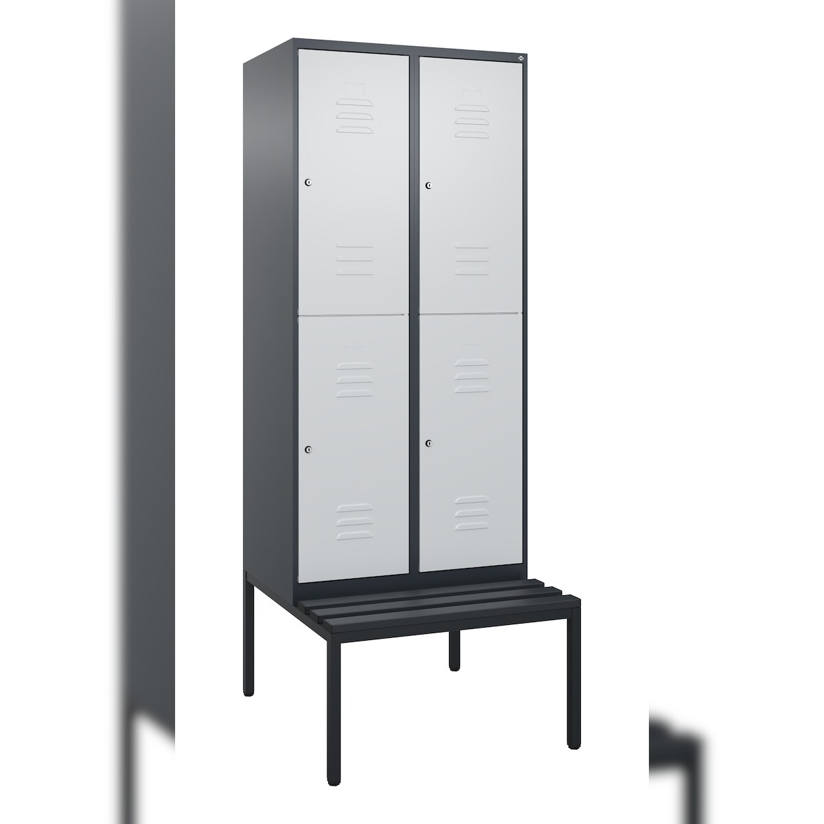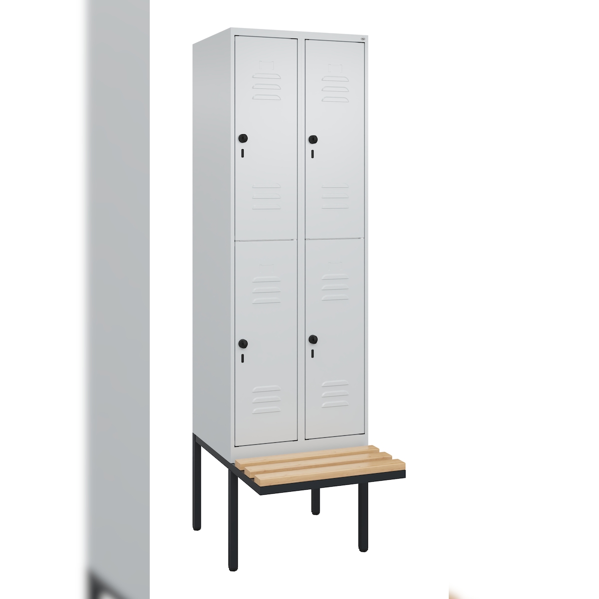 C+P Spind Classic PLUS, Buche schwebende Sitzbank, 4 Abteile, HxBxT 212x60x82cm, Sicherheitsdrehriegel, Hellgrau/Hellgrau von PROREGAL