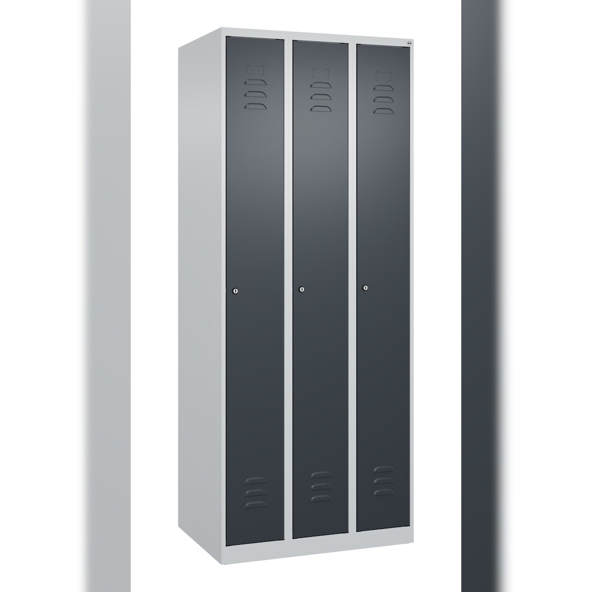 C+P Spind Classic PLUS, 3 Abteile, HxBxT 185x75x50cm, Zylinderschloss, Hellgrau/Anthrazit von PROREGAL