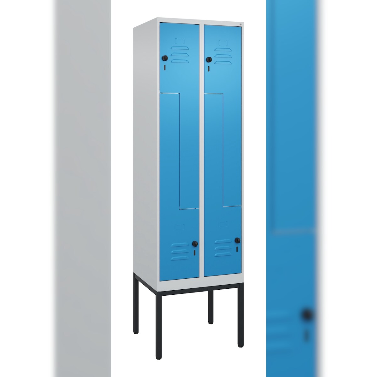 C+P Spind Classic PLUS, 2 Abteile, HxBxT 185x80x50cm, Sicherheitsdrehriegel, Hellgrau/Enzianblau von PROREGAL