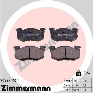 ZIMMERMANN Bremsbelagsatz, Scheibenbremse 20973.110.1 hinten rechts links Foto entspricht Lieferumfang für RENAULT PEUGEOT (DF-PSA) CITROËN 425271 425