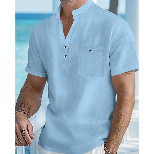 Per uomo Camicia Camicia con colletto cinese Camicia con colletto alla coreana Camicia casual Camicia di cotone Semplice Vacanza Streetwear Azzurro cielo Grigio scuro Beige Mezza Manica Colletto alla