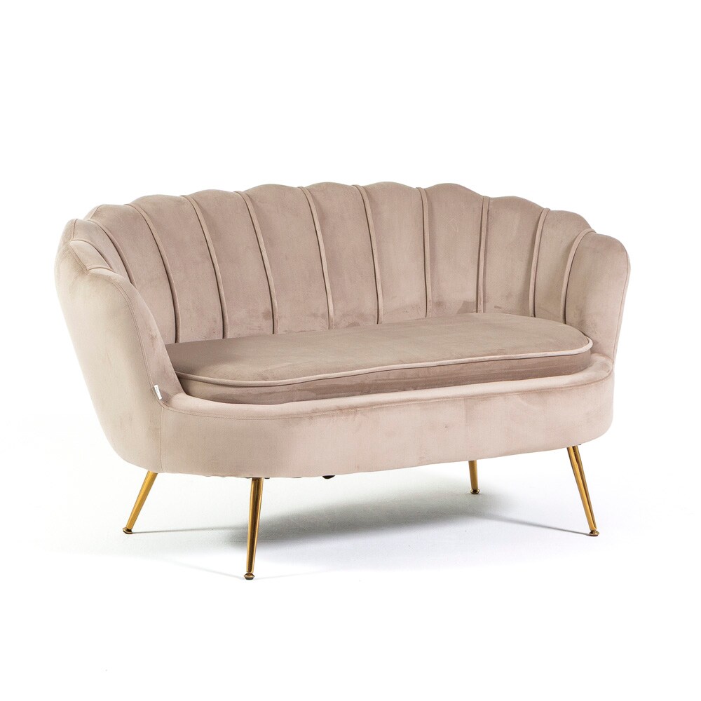 RATTATAN 2-Sitzer-Sofa aus Samt mit Muschel-Design und goldfarbenen Metallbeinen, elegantes und komfortables Sofa für Wohnzimmer und professionelle Räume–PERLA