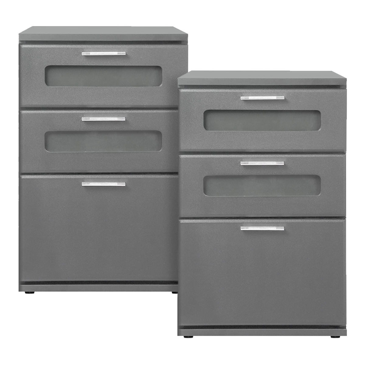 ML-Design Nachttisch 2er Set Grau, 3 Schubladen mit Glaseinsatz, 40x60x38 cm, Holz Nachtschrank Nachtkonsole Kommode