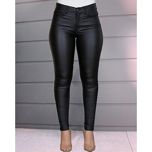 Per donna Aderente Pantaloni di pelle Pantaloni Moda Lunghezza alla caviglia Semplice Tasche Laterali Sollevamento glutei Comodità Controllo addominale Elasticizzato Feste Casual Quotidiano Rosso