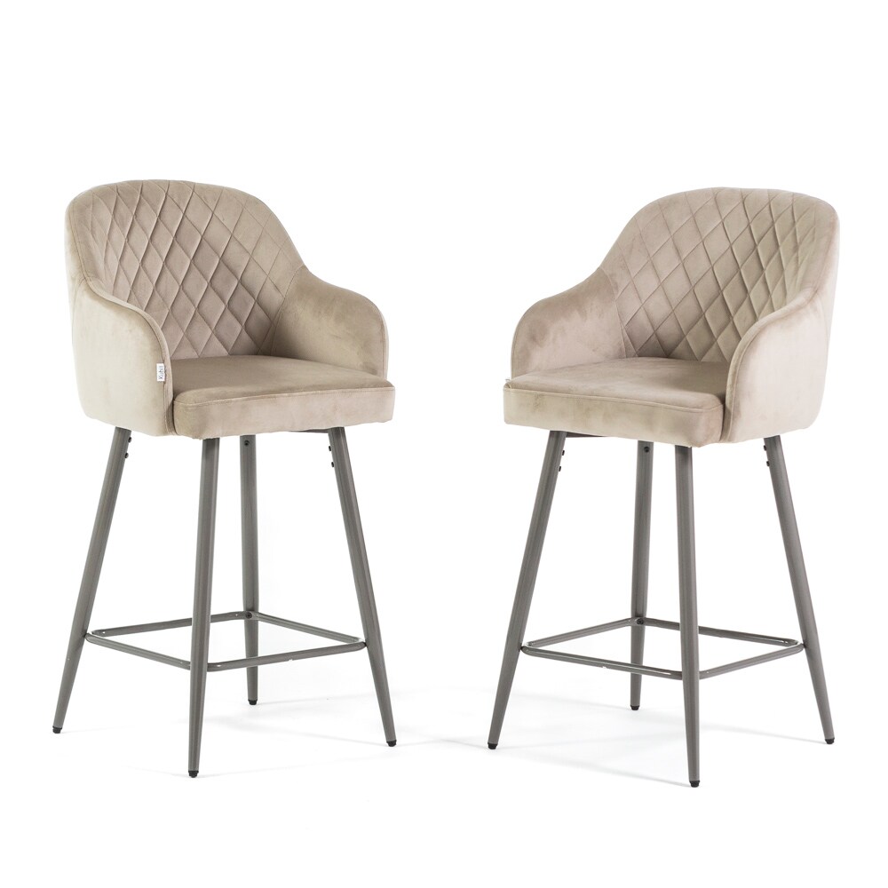 RATTATAN 2er-Set Barhocker aus Samt mit Metallbeinen und gepolsterter Sitzfläche, elegantes Design – für Bar, Restaurant, Küche oder Theke – Tessa XL – Beige