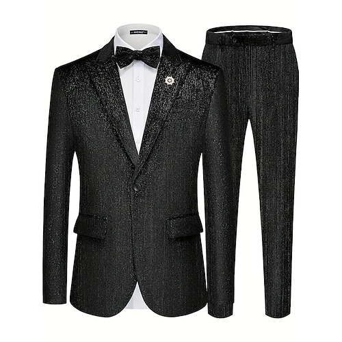 Uomo Matrimonio Casuale Abiti da festa Bavero a lancia Nero Verde cacciatore Formale Tinta unita Vestibilità aderente 2 pezzi Monopetto a un bottone