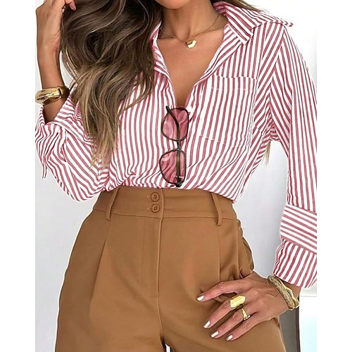 Per donna Camicia Blusa A righe Essenziale Casual Manica Lunga Colletto a Camicia Top Regolari Quotidiano Bottoni Stampato Rosa Blu Viola Grigio Estate Primavera