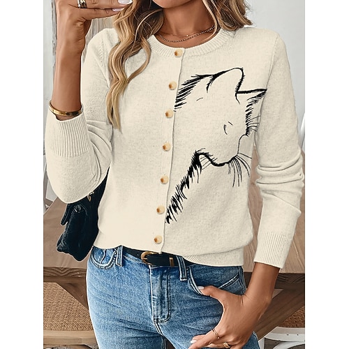 Per donna Felpa Cardigan Quotidiano Elegante Scollo a V Bottoni Lavorato a maglia Manica Lunga Top Regolari Maglia Casa Sport Quotidiano Nero Giallo Primavera Autunno