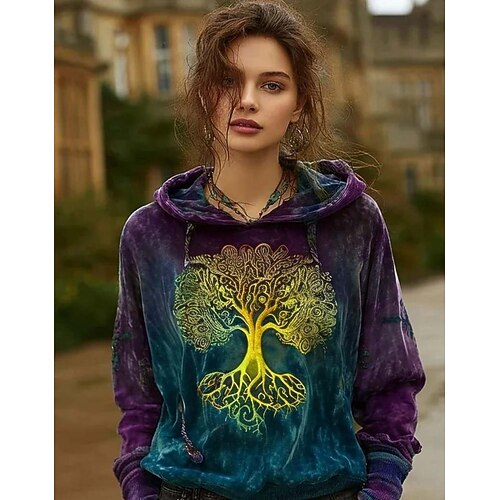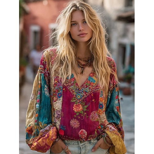 Carnevale Per donna Maglietta Grafico Astratto Vintage Moda Elegante Manica Lunga Scollo a V Top Regolari Quotidiano Taglio Stampato Rosso Viola Primavera Autunno