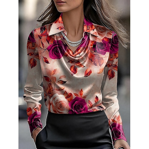 Per donna Blusa Floreale Grafico Elegante Casual Manica Lunga Scollo a Cascata Top Regolari Quotidiano Lavoro Arricciato Drappeggiato Blu Giallo Rosso Primavera Inverno