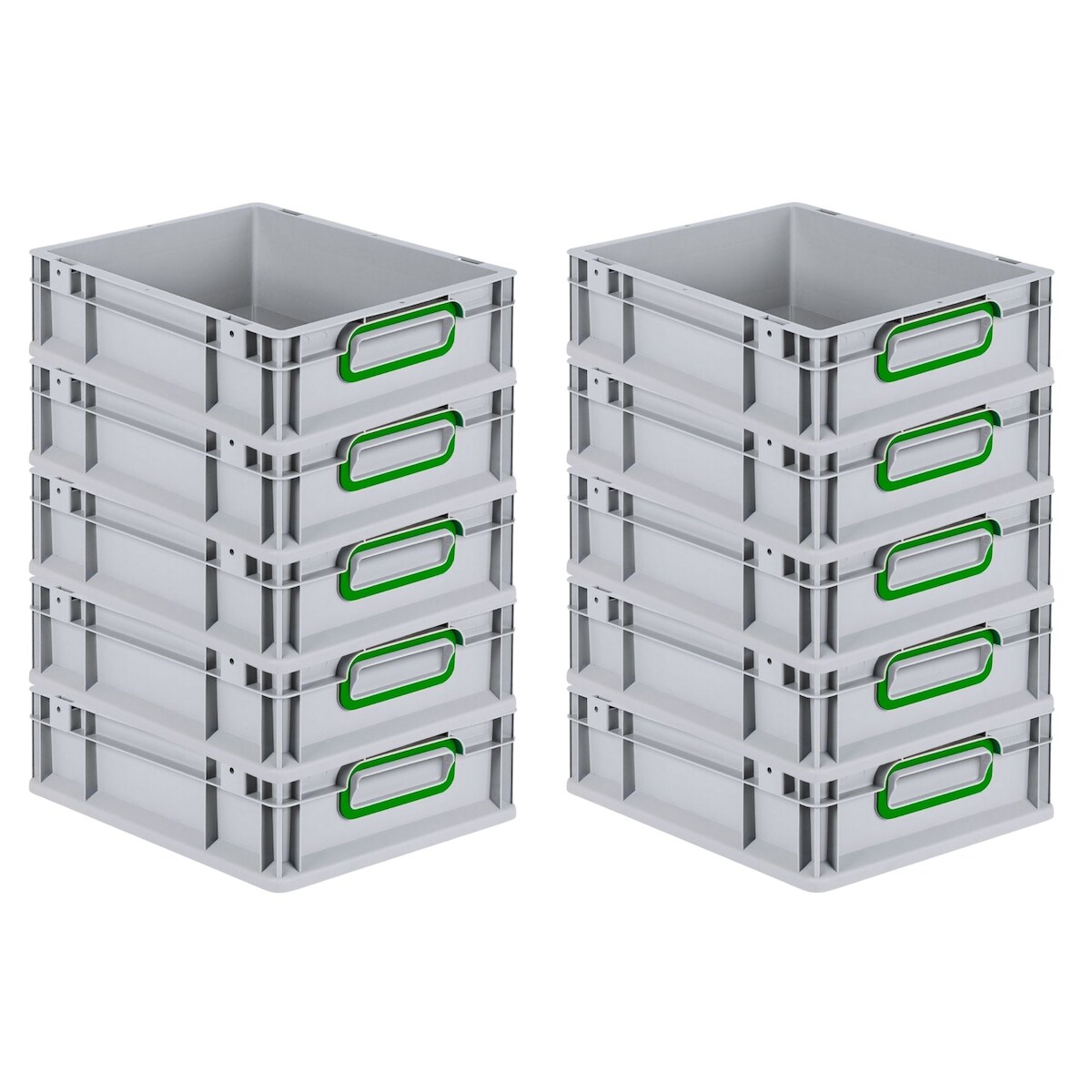 PROREGAL 10x Eurobox NextGen Color | HxBxT 12x30x40cm | 11 Liter | Griffe grün geschlossen | Glatter Boden | Eurobehälter