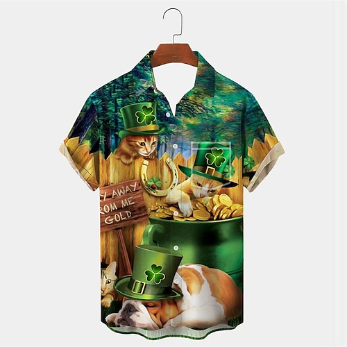giorno di san patrizio quadrifoglio camicia casual da uomo abbigliamento quotidiano per uscire nel fine settimana autunno/autunno couverture maniche corte verde s, m, l camicia in tessuto
