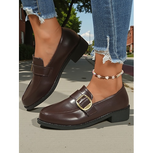 mocassini marroni da donna con fibbia dorata - stile casual classico, perfetti per l'uso quotidiano, in ufficio e per le uscite del fine settimana