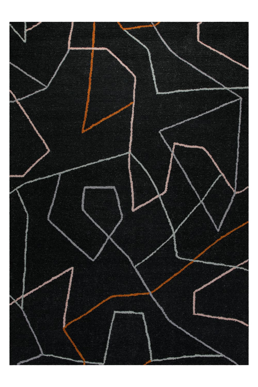 Tappeto fatto a mano lana verg./viscosa, design antracite 140x200