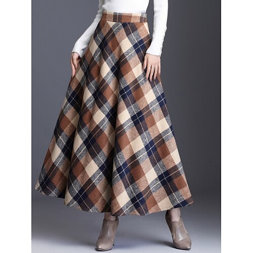 Per donna Gonna Linea A Elegante Moda Maxi Vita Alta Gonne Plaid Tasca Stampato Micro-elastico Natale Streetwear Rosso Blu Verde Cachi Primavera Poliestere