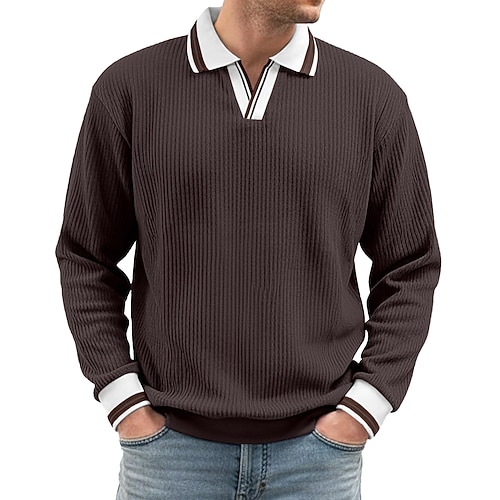 Per uomo Camicia di Velluto a Coste Polo Casuale Affari Colletto Polo a Coste Manica Lunga Moda Essenziale Tinta unica Lavoro a maglia Caldo Autunno Inverno Tutte le stagioni Vestibilità regolare Blu