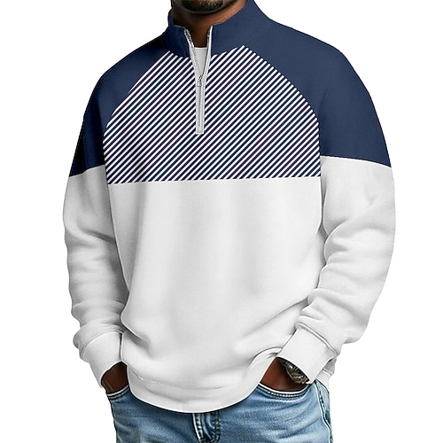 Per uomo Blocco di colori Geometrico Polo con zip Manica Lunga Magliette polo Colletto alla coreana Casual Scuola Athleisure Ferie Abbigliamento quotidiano Stampa 3D Polo con cerniera a un quarto