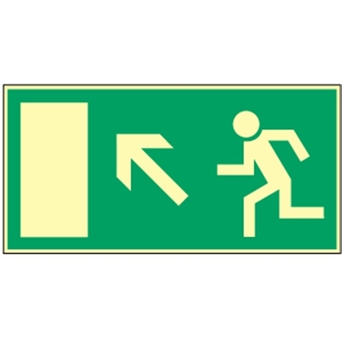 Aufkleber Rettungsweg links aufwärts, BGV A8 (E13), Folie, nachl., 160-mcd, 297x148 mm