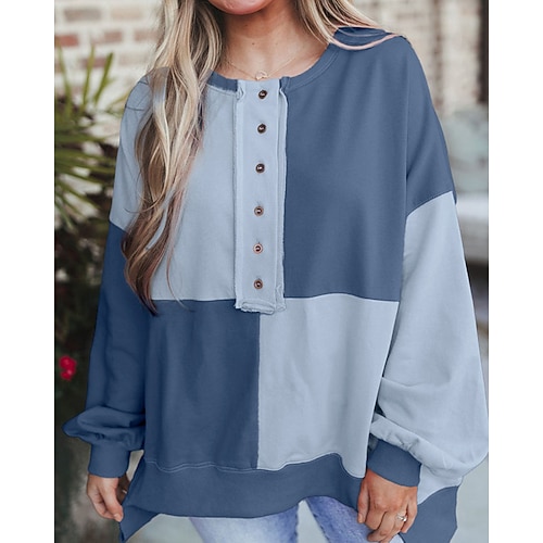 Per donna Felpa con cappuccio Blocco di colori Streetwear Casual Manica Lunga Con Cappuccio Top Regolari Streetwear Uscire Patchwork Rosa Verde Beige Autunno Inverno