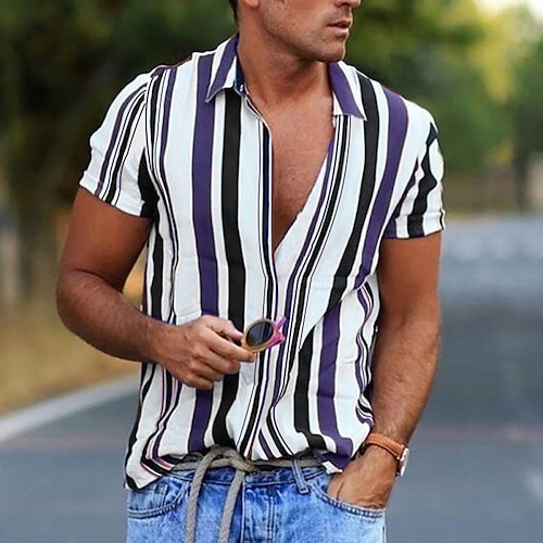 Per uomo A strisce Geometrica Camicia Camicia con bottoni Manica corta Di tendenza Originale Informale Esterno Giornaliero Estate Colletto Stampa Bottone giù Bianco Blu Viola Marrone Grigio