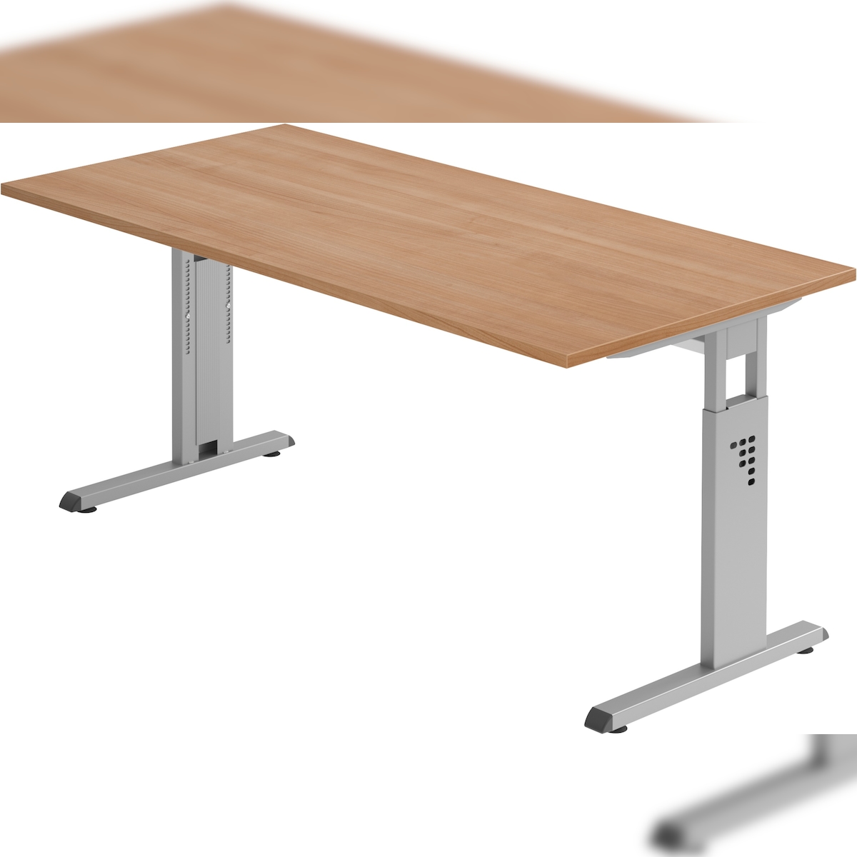 bümö höhenverstellbarer Schreibtisch O-Serie 160x80 cm in Nussbaum, Gestell in Silber - PC Tisch für's Büro manuell höhenverstellbar, Computertisch