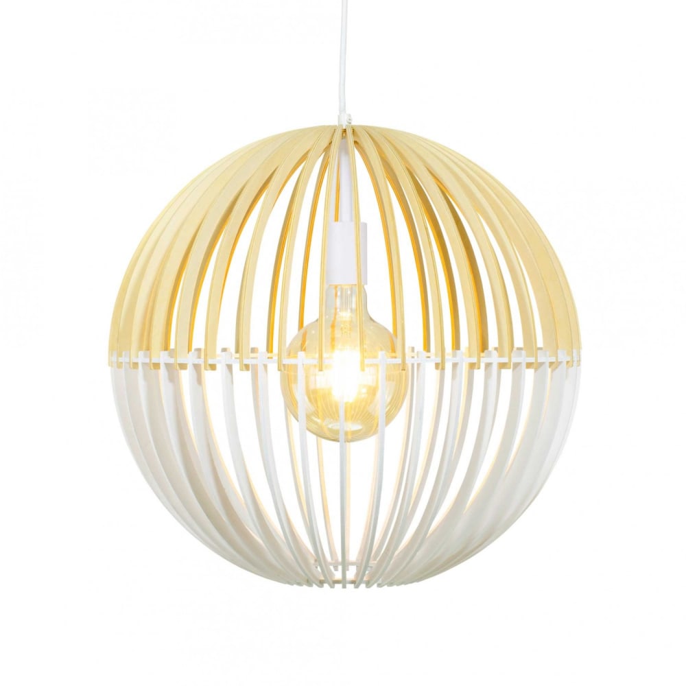 Suspension grand modèle en lamelles de bois naturel et blanc