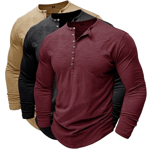 Maglietta Henley da uomo a maniche lunghe, tinta unita, alla moda, casual, confezione multipla da 3 pezzi, per attività all'aperto, casual, estate, primavera, blu, bianco e nero.