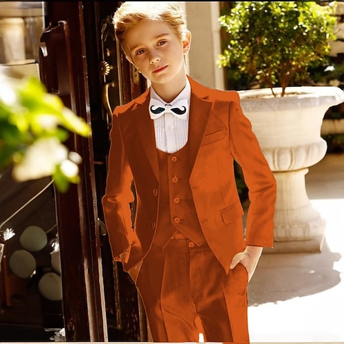 Completo da fedi nuziali per bambini, 3 pezzi, blazer gilet pantaloni da ragazzo, abito formale, casual, da esterno, da festa, alla moda, fresco, basic, tinta unita, tasche, bottoni, blu, nero,