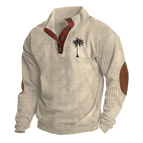 Per uomo Maglia Nero Bianco Blu Marrone Cachi Colletto Mao Albero Patchwork Stampato Sport Outdoor Quotidiano Ferie Velluto a coste Poliestere Streetwear Essenziale Casual Primavera Autunno
