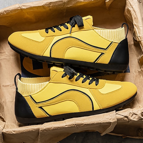 scarpe da ginnastica casual da uomo gialle e nere con design in rete traspirante, scarpe leggere e antiscivolo per passeggiate all'aperto, viaggi e stile quotidiano