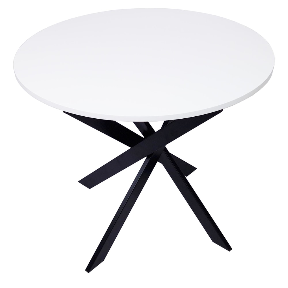 Tavolo da pranzo rotondo effetto legno bianco e nero 90x90x77cm