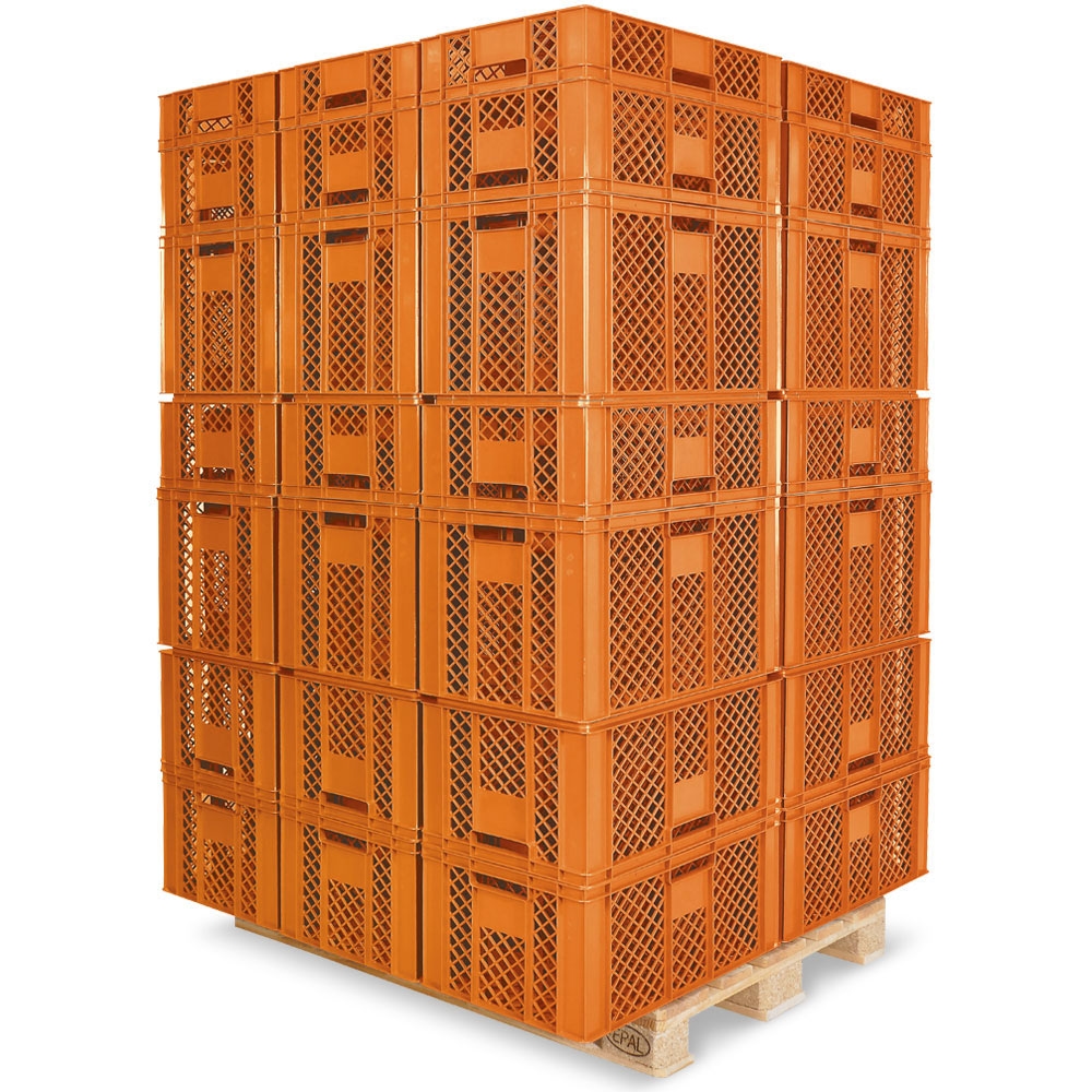 BRB 1 Palette / 78 Stück Stapelkörbe/Bäckerkästen in 5 Größen, Grundmaß LxB 600 x 400 mm, H 90 mm, 150 mm, 240 mm, 320 mm, 410 mm, Farbe orange