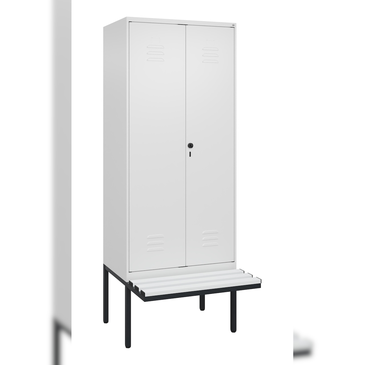 Schwarz-Weiß-Spind Classic PLUS Sitzbank, 1 Abteil, grau, B 800 mm, Zylinderschloss, auskragend, Buche-Hartholz C+P