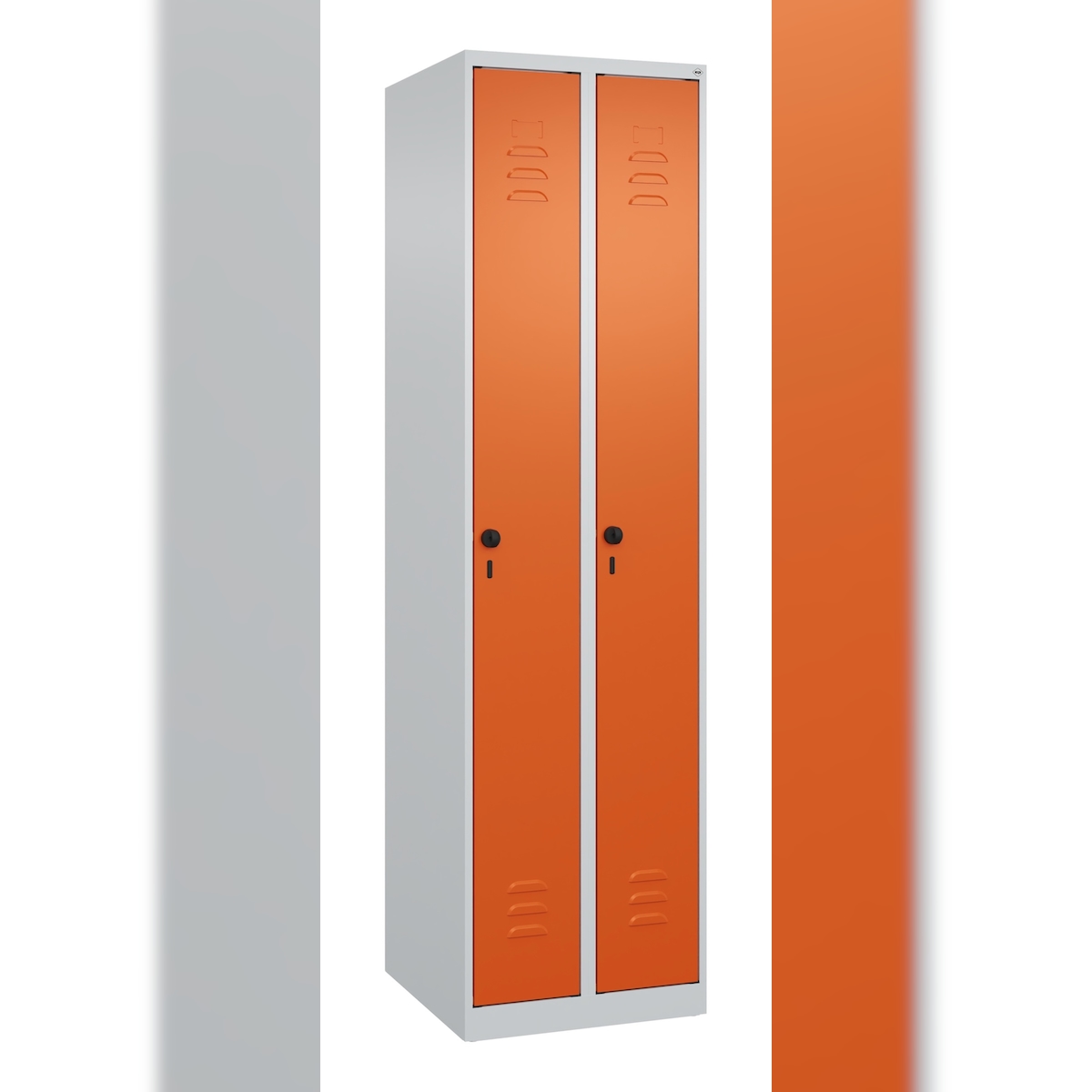 Spind Evolo PLUS, 2 Abteile, lichtgrau, B 800 mm, mit Bodensockel, Zylinderschloss C+P