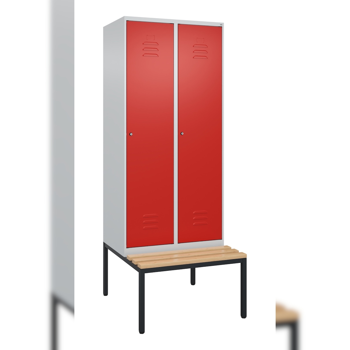 C+P Spind Classic PLUS, Kunststoff schwebende Sitzbank, 1 Abteil, HxBxT 212x40x82cm, Sicherheitsdrehriegel, Hellgrau/Rubinrot von PROREGAL