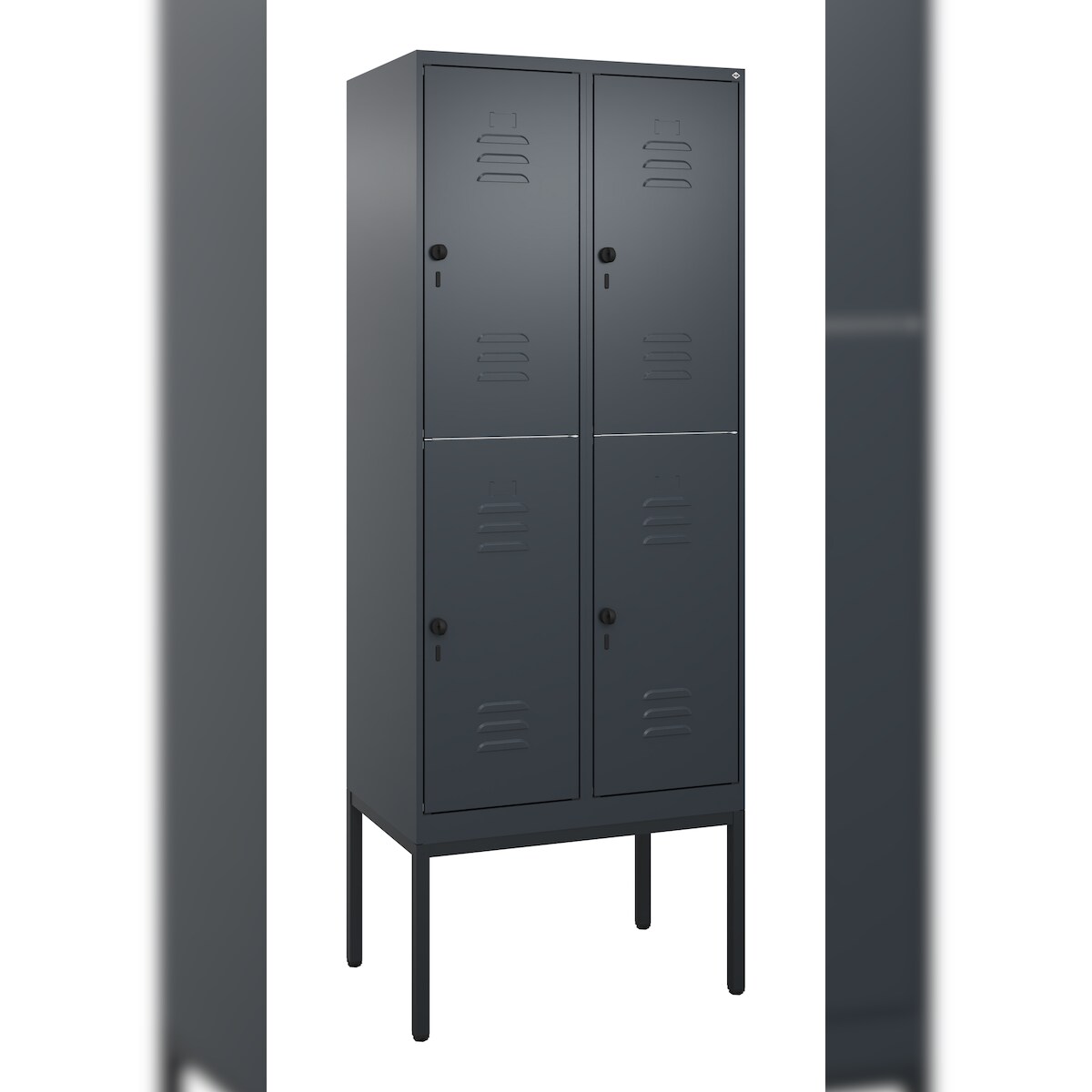 C+P Z-Spind Classic PLUS, Kunststoff untergebaute Sitzbank, 4 Abteile, HxBxT 212x60x82cm, Sicherheitsdrehriegel, Anthrazit/Hellgrau von PROREGAL