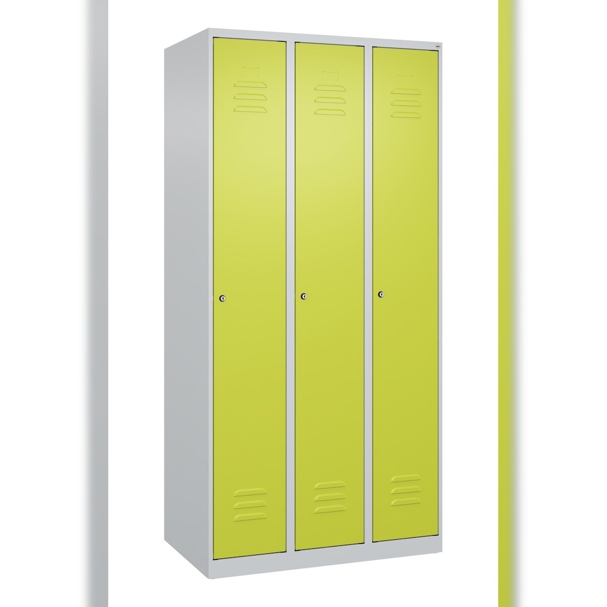C+P Spind Classic PLUS, 3 Abteile, HxBxT 185x90x50cm, Zylinderschloss, Hellgrau/Clowngrün von PROREGAL