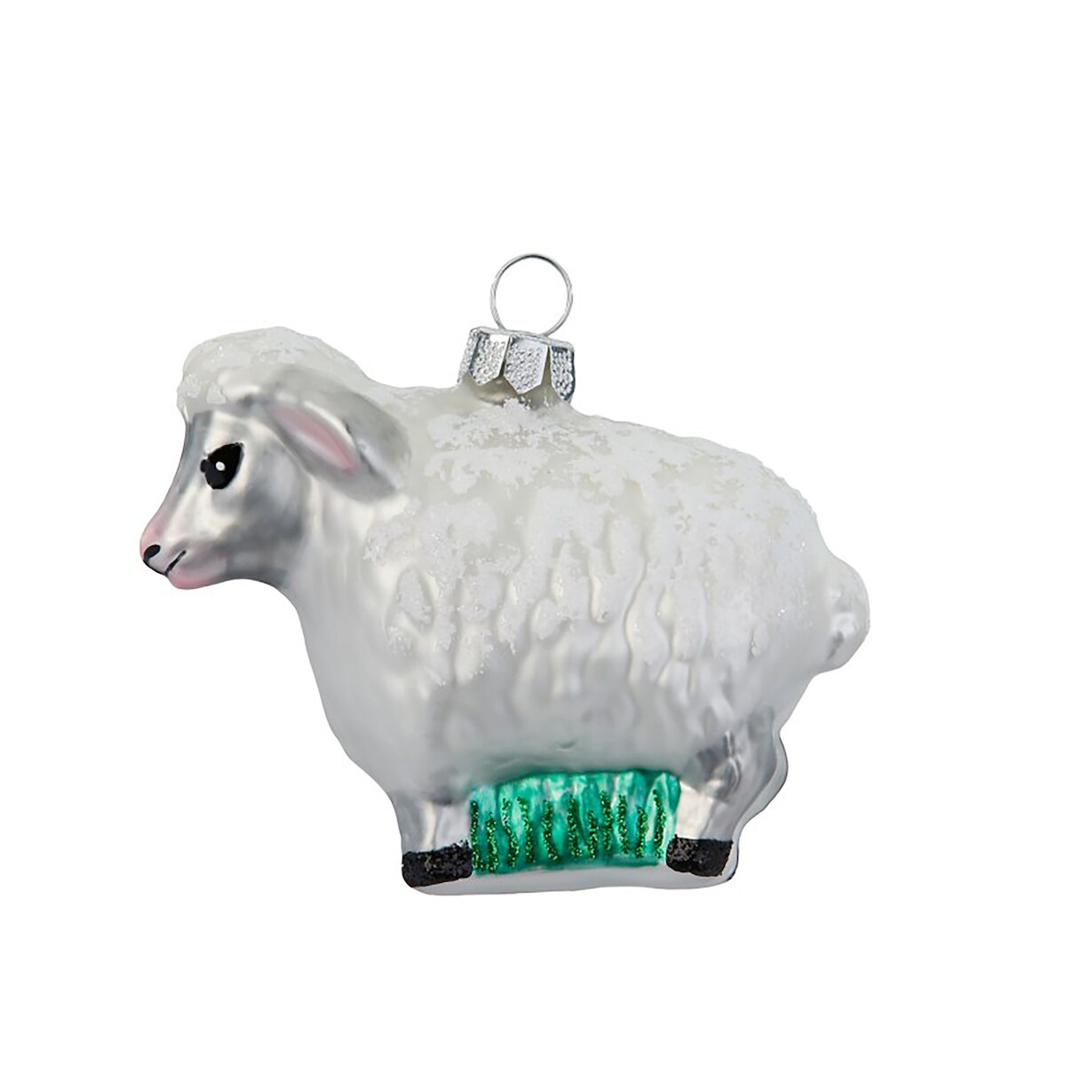 Inges Magic & Goodz Christbaumschmuck Glas 6,5cm Schaf Figur Handbemalt Weihnachtsbaum Anhänger Weihnachten Christbaumanhänger Weihnachtsbaumschmuck Bauernhof Tiere Weiß
