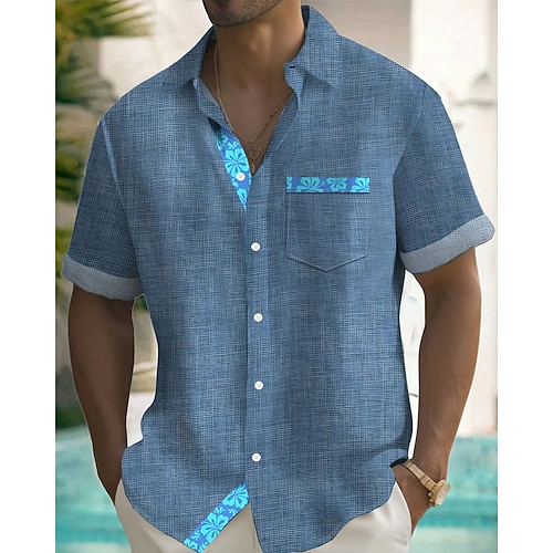 Per uomo Camicia Camicia di lino Camicia Estiva Abbigliamento da spiaggia Camicia con Bottoni Semplice Vacanza Crociera Bianco Rosa Azzurro Senza Maniche Colletto Estate Primavera Abbigliamento