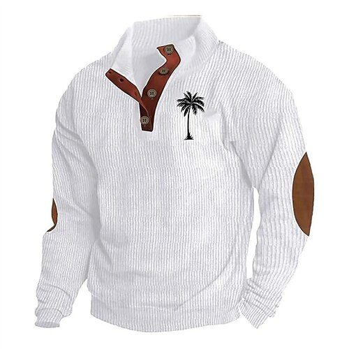 Per uomo Maglia Nero Bianco Blu Marrone Cachi Colletto Mao Albero Patchwork Stampato Sport Outdoor Quotidiano Ferie Velluto a coste Poliestere Streetwear Essenziale Casual Primavera Autunno