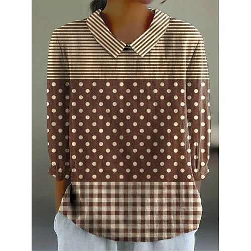 Per donna Camicia Blusa Floreale A pois Informale Manica lunga Colletto Top regolari Da mare Giornaliero Bottoni Stampa Bianco Rosa Rosso Blu Cachi Primavera estate