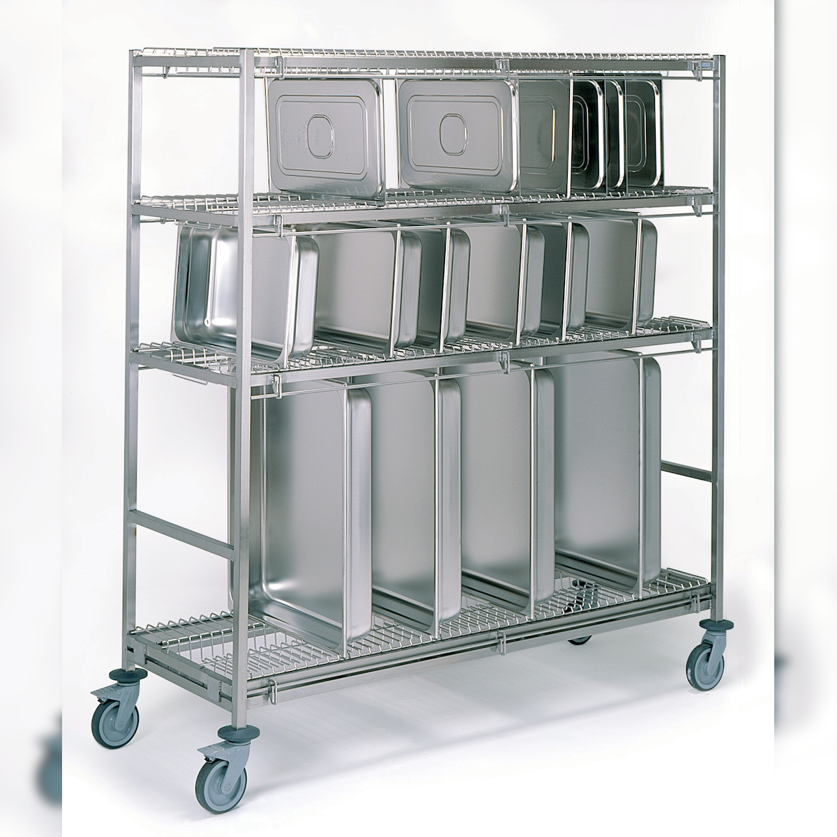 Tournus Wagen für GN Behälter - ideal zur Trocknung und Aufbewahrung. 38 Fächer pro Ebene.