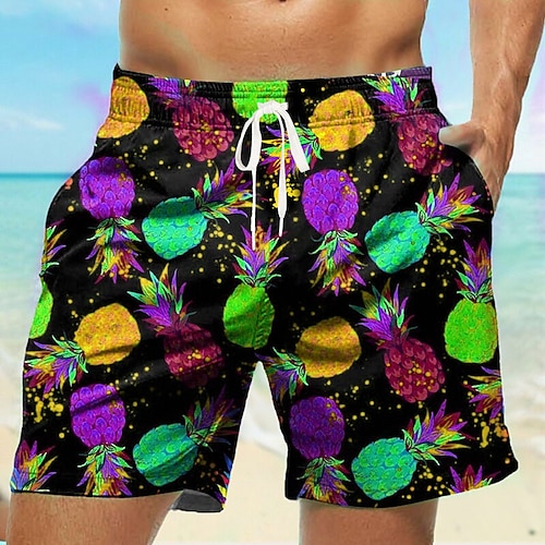 Per uomo Ananas Costume nuoto a pantaloncino Boxer da surf Pantaloncini da mare Vita normale Hawaiano Informale Per eventi Spiaggia A cordoncino con fodera in rete Vita elastica progettista