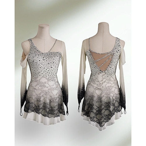 Abito da pattinaggio artistico Per donna Ragazze Pattinaggio sul ghiaccio Vestito Bianco / Nero Patchwork Orlo asimmetrico Spandex Rete Alta elasticità Allenamento Competizione Vestiti da pattinaggio