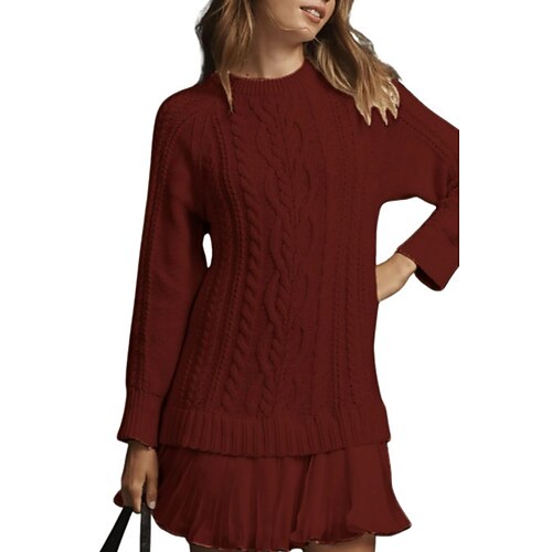 Per donna Abito maglione Casual Morbido Colore Puro A Coste Girocollo Volant Lavorato a maglia Manica Lunga Top Regolari Maglia All'aperto Quotidiano Weekend Nero Rosa Autunno Inverno