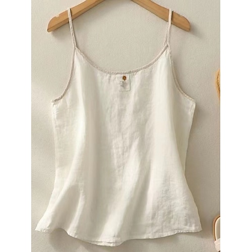 Per donna Camicie di cotone e lino Tinta unica Essenziale Casual Senza Maniche Spallina Top Regolari Quotidiano Ricamato Blu marino Albicocca Beige Estate Primavera